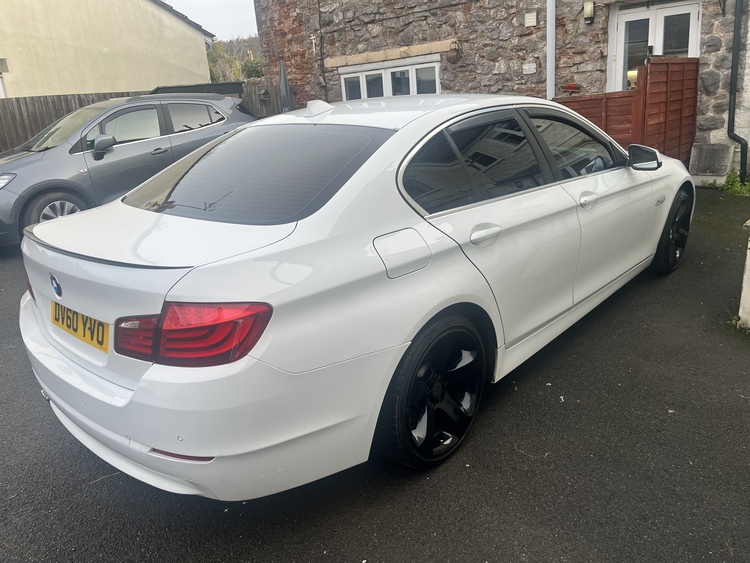 Stunning 520 D SE, auto , steptronic,mot oct,new tints all round, sat on 19inch fat fives, all with good tyres,angel eyes,new window deflectors,full black heated leather, i drive, park assist,auto lights, auto wipers,blutooth cd radio,auto handbrake with auto hold,few age related marks worst on back door,drives spot on with no knocks no smoke,some service history’ and stamps,full closure alarm, cheap tax and economical