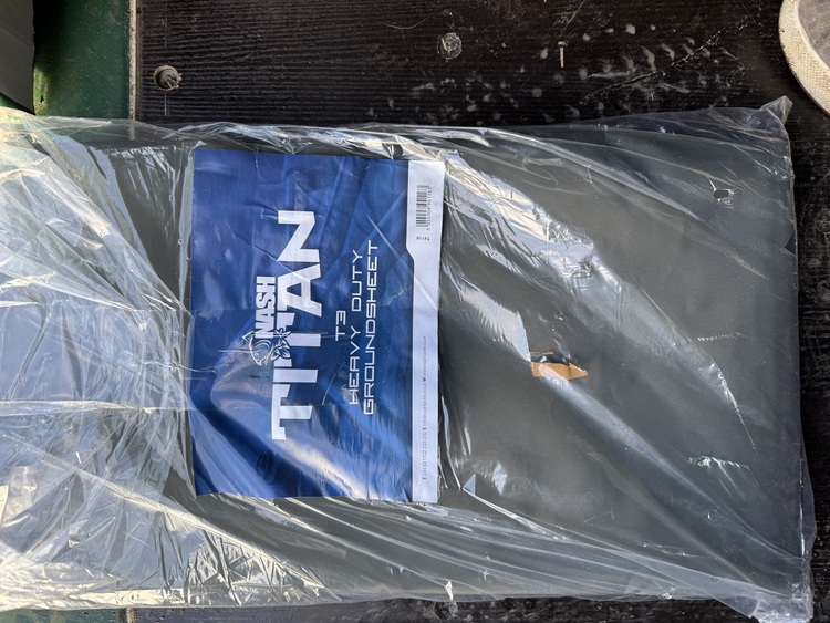 Comes with a brand new heavy duty ground sheet (still in the bag),both storm poles .