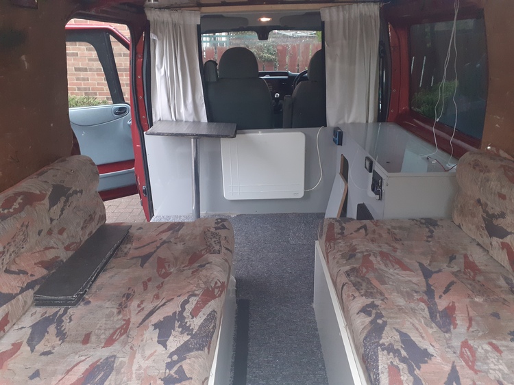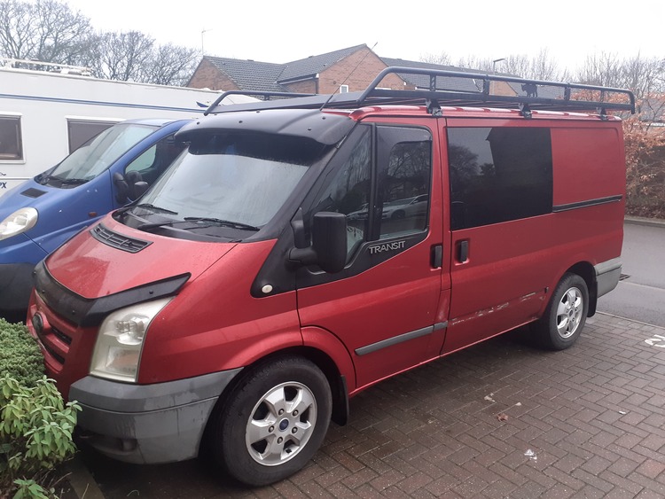 Ford transit trend 2 birth campervan. 10mts m.o.t, 160k miles. Rhino roof rack, rear ladder. Sun visor, bonet visor, also comes with chrome nudge bar with spot lights, not fitted. Rear seating drops into double bed. Diesel night heater, solar power. With split charge system. Also has large inverter, Pop up 240v sockets. Electric panel heater. Mini fridge 12v, sport alloy wheels. Lots of money spent. Just needs walls paneling, and ceiling to finish, all hard work done. Solid van never been welded like most òther transits,
