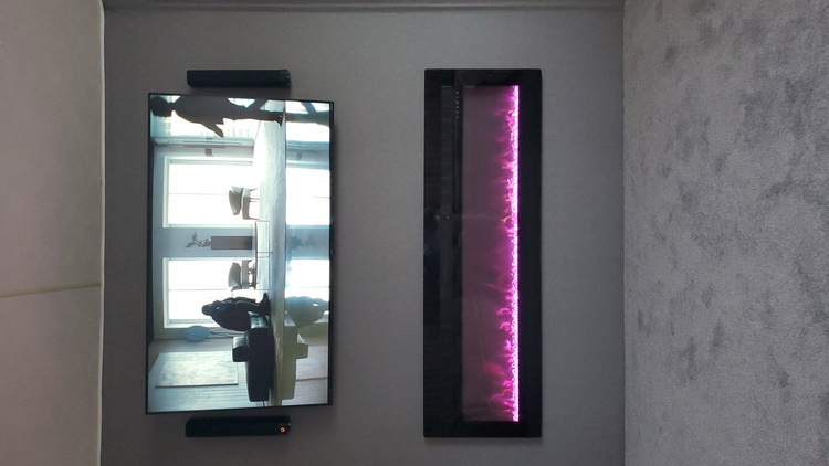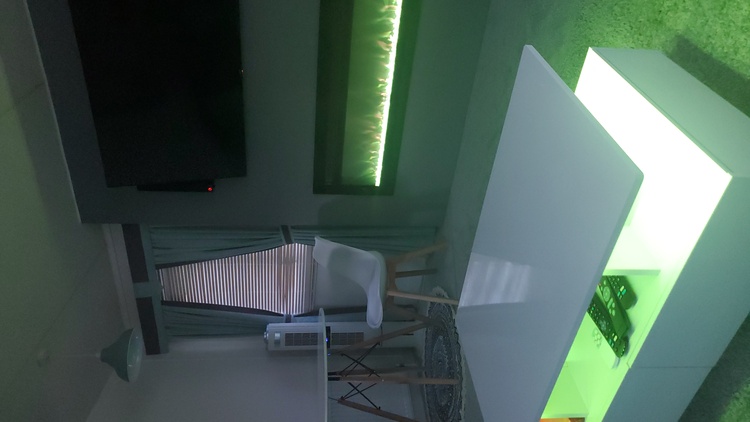 New studio wall built TV and surrounding sound.