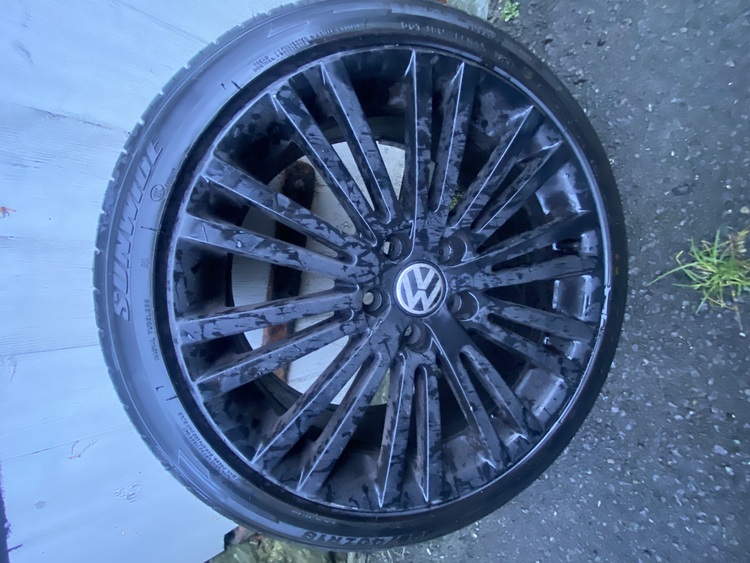 4 alloys with 4 new tyres, one could do with a refurb. Vw fitment so will also fit Audi seat Skoda £500 ovno .. tyres were £80 each on there own