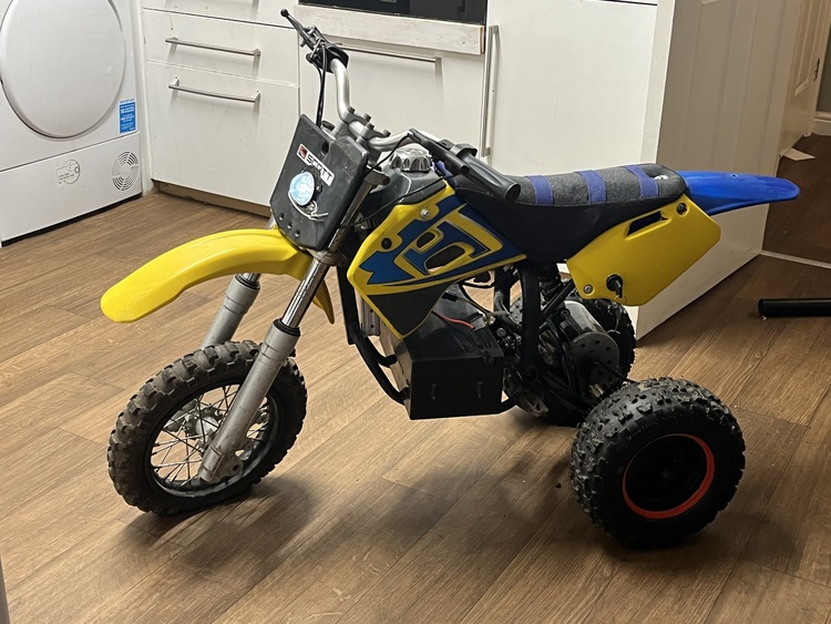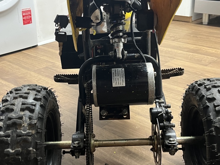 It’s a 1000w motor powered by a 36v battery reaching speeds of 25miles per hour with adults on,