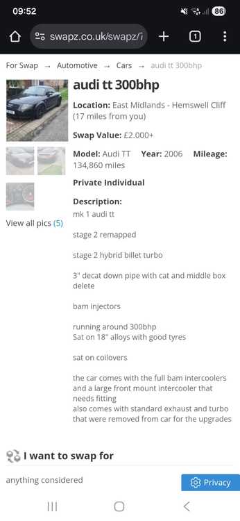 Audi tt 300bhp bmw st Vxr VRs dsg