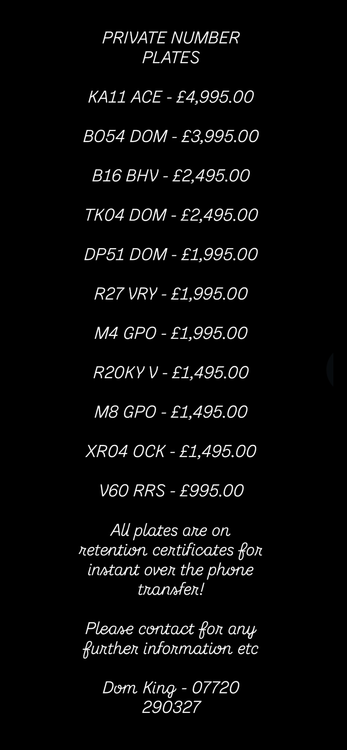 All plates are on retention certificates for instant over the phone transfer!