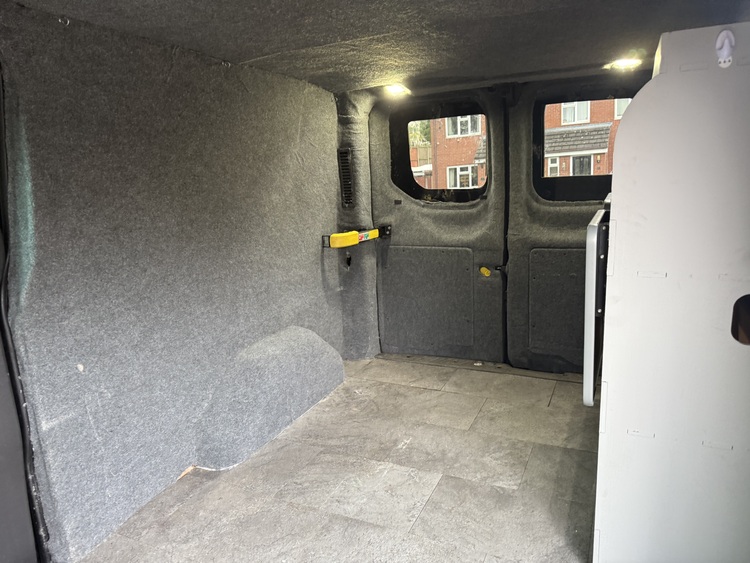 The rear of the van has been fully insulated and carpeted