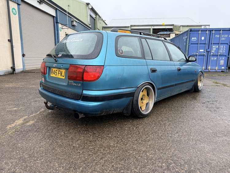 Toyota carina e long mot lowered on chopped springs 9 x 16 Borbet a wheels good runner rough around the edges