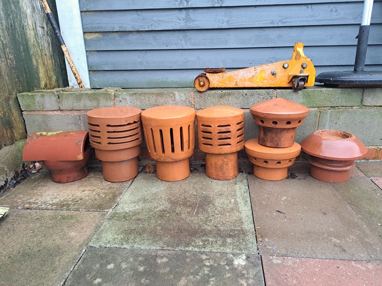 As seen in the pictures a selection of chimney inserts and a pot all good condition will split.
