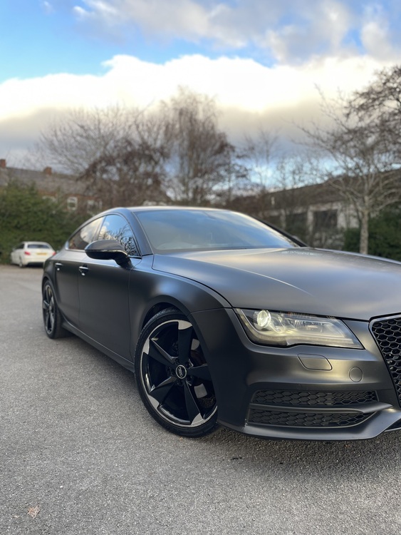 2013 62 REG, AUDI A7 S-LINE QUATTRO START/STOP TECH, 3.0L TDI TURBO DIESEL 245 BHP, S-TRONIC AUTO, 5 DOOR HATCH WRAPPED IN SATIN BLACK BARGAIN