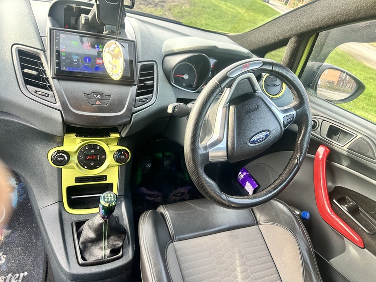 Ford fiesta 1.6tdci 2009 little mods 117k miles short mot month drives solid no knocks bangs anywhere no lights on dash half purples nice low profile alloy wheels full st inside including steering wheel apple play stereo big bore exhaust (not loud) tinted windows Sun strip all little works bodywork decent all round clutch engine and box is good comes with full logbook little issues with drivers window doesn’t go down had all the joker theme inside like foot well roof lining etc if your in to that easy to pull off also with wrap easy to remove nice little car aftermarket bumpers on front wanting swap try me cars in daily use driven all day no issues