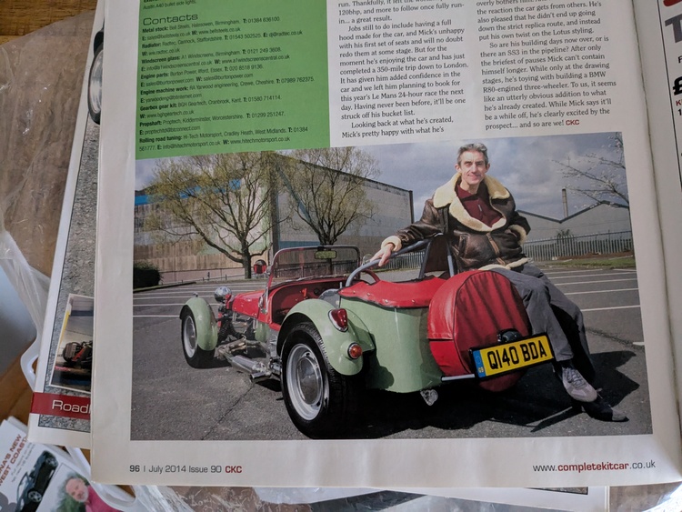 It has done only 1600 mile since built and will benefit from a full MOT. It's fully road legal with a full pack of documents and featured magazines to prove it's province.