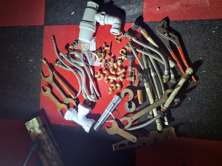 Shed clear out finds assortment new and old as seen in the picture plumbing tools fittings etc