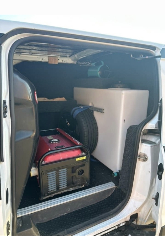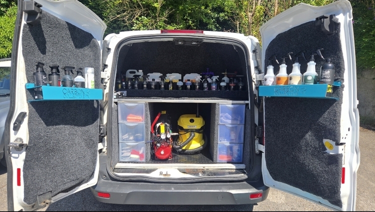 The rear isn't as full as I've put in the new van, however the shelves and work top still there along with some random bits of products. The carbon collective bottle holders removed but still have another to go with.