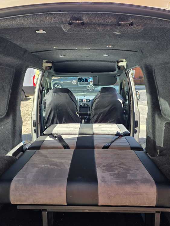 Hi. Just seeing what's about. I have this caddy, beautiful body work, rock and roll double bed/3 seats mounted in the back.
