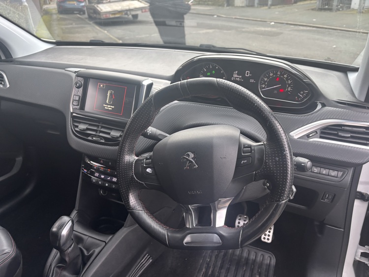 Peugeot 208 1.2 gt line small flat bottom steering bucket leather seats sat nav apple i play usb dab radio candy white car is truly amazing very good for a new driver quick little car reminds me of the old school gti may swap for a auto no shitters cash price £2000 quick sale my son has upgraded to a new car px price £2500