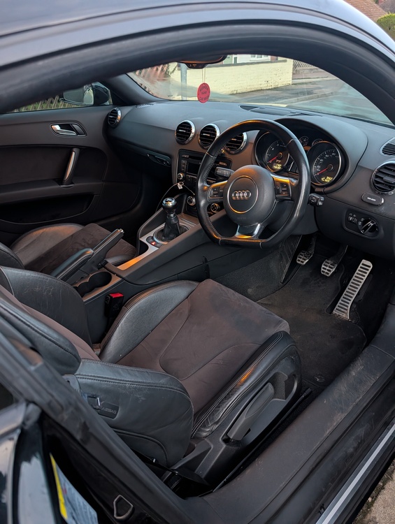 Thank you for viewing my listing first of all this Audi TT is 2.0 tfsi cam belt has been done and I do have service history with the car I just need to find before swap or sale due to moving house last week it does only come with one key but runs and drive very well no smoke on start up or acceleration or deacceleration in side is half leather and alcantara with cd and radio sound system works as should no crackling speakers both seats work as should cruise control electrical folding mirrors air conditioning electrical function rear spoiler that works and only 3 former keepers from new v5 in my name and present no finance or a category right off car it's a nice clean honest car it's just not suitable for doing the long drives I do and being 6'ft 1 I just need something bigger please ask any questions please not abs light and airbag light are on but will be done before swap or sale it's the steering being off center from now shocks just needs tracking done can lower price of car too 2500 if take as is or 3000 done