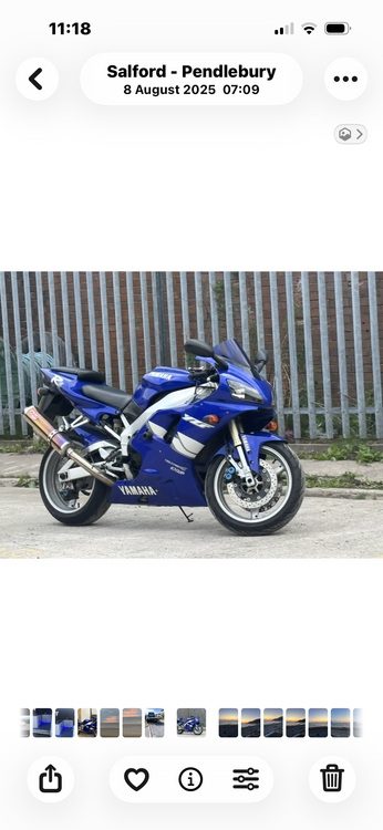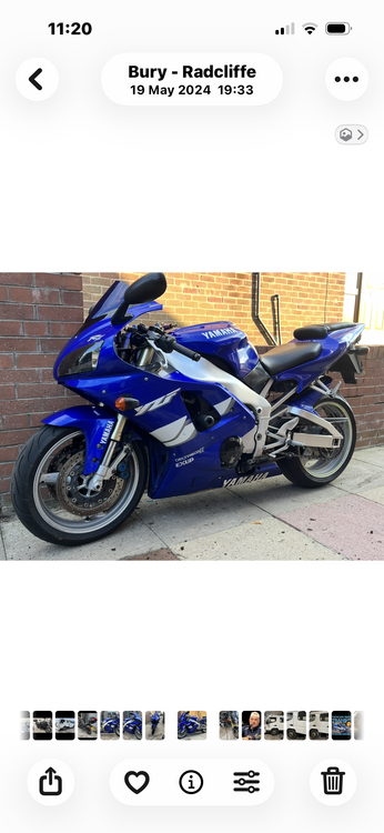 Yamaha R1 4XV 1999 in the best colour scheme mot July 26th. Sports exhaust really tidy example does have a few age related marks but still an amazing looking bike a true future classic. It could do with a tune up in the 3 1/2 years I’ve owned it it’s only done just over 100 miles. It’s only done 35 miles since the mot. I’m on no rush to get rid of it but fancy a fire blade or an enduro.