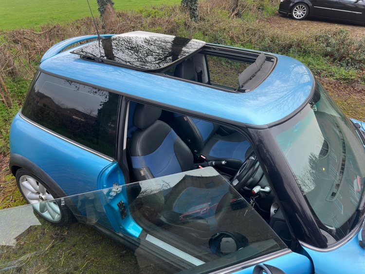 HPI Clear, R53 Cooper S Supercharged, Rare Electric Blue, Rare Blue with the Blue roof, comes with the Panoramic Roof and xenon headlights, half leather Interior, Mega Service History, 2 keys, Just had a major service with spark plugs and new brakes, had a oil leak fixed it was from the oil filter housing which has been rectified with a new seal, new Yokohama Advan Sport tyres all around, comes with the original set of tail lights also, has Mot until August but a new MOT can be arranged, delivery can be arranged.