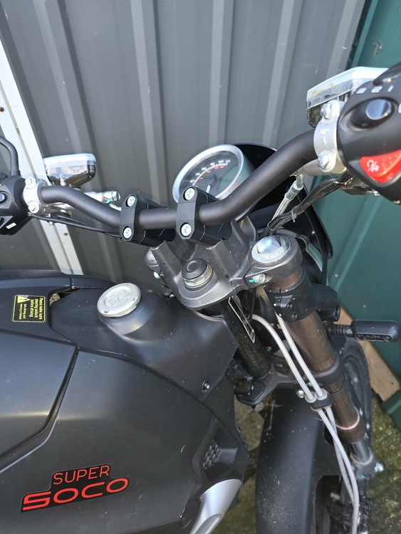2022 super soco tc max, 125 equivalent electric motorcycle, 72v 45ah, will do 60mph, and has a range of 60mls on power 1(town mode 38 pls an hour) 3 power modes, unlike others it doesn't really limit pull away power just the top speed, done circa 1500 miles from new, due its first mot oct 26,comes with few upgrades, headlight fairing, riser mounts for bars, rear tailtidy and numberplate mounted rear indicators that are running/brake lights also, comes with the uprated 10w charger thats a 300 extra and does a full charge in 3 hours, at sub 50p, so less than 1p per mile........ cheap tax/insurance, 2 keys/alarm fobs, these bikes were 4600 new, this is the upgraded model with bigger controller, thicker cables and shut off fuse under the seat.......runs,rides and charges exactly as it should