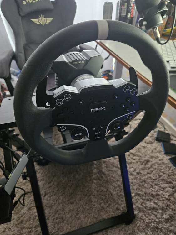 Moza R3 base with pedals and clutch comes with a gt players stand all boxed looking to swap everything is like new