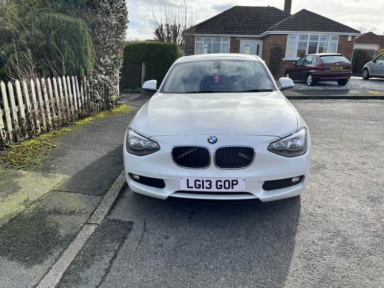BMW 2013 116D 2.0 diesel se model £20 a year road tax with sport button 127000 mls in pearlescent white beautiful colour with alloys all new tyres full electrics led lights all round and inside as well car drives faultless with no noises comes with full mot any trial swap for Car or van maybe nice motorbike what you got to swap me Located chesterfield