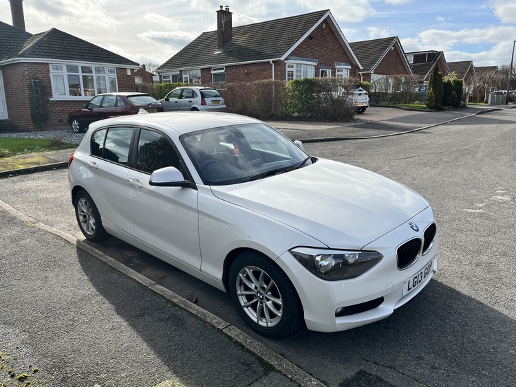 BMW 2013 116D 2.0 diesel se model £20 a year road tax with sport button 127000 mls in pearlescent white beautiful colour with alloys all new tyres full electrics led lights all round and inside as well car drives faultless with no noises comes with full mot any trial swap for Car or van maybe nice motorbike what you got to swap me Located chesterfield
