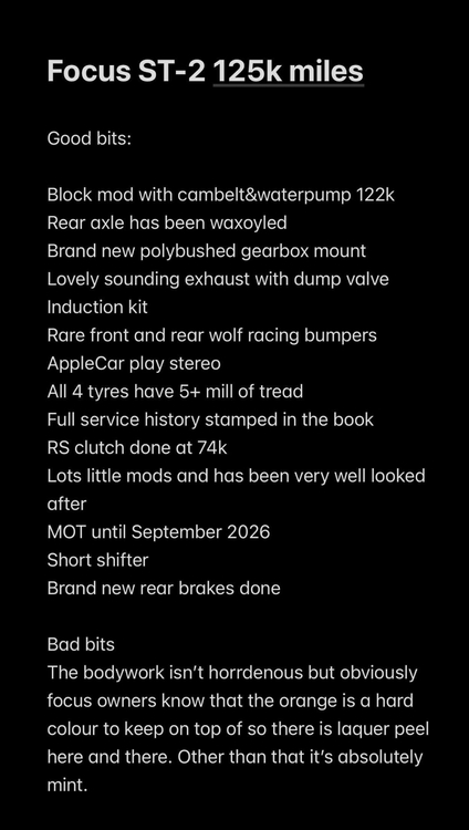 Block mod was done at 122k rs clutch was fitted at 74 k loads of pics of the work thats been done onit as well as service book of its history whats been done onit and spent onit mot till September just had rear discs and pads just testing what I get offered onit please see photos for more information on the st