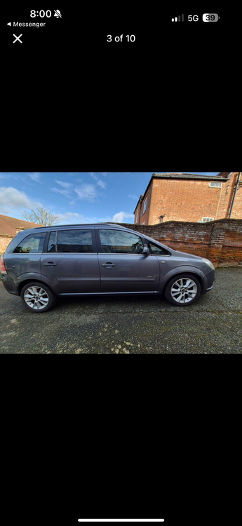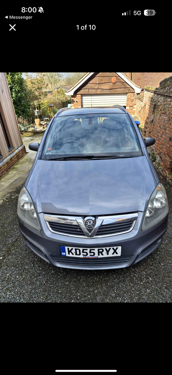 Vauxhall Zafira 2.2 petrol Runs well, MOT until 30 May. Dent and scuff to rear offside bumper. Tyres all have good tread, and no lights on dash. May swap for a van with tow bar or another petrol car. Mileage may increase slightly as still being used. Test drives welcome