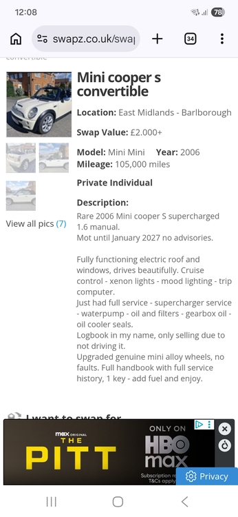 Mini cooper s convertible 1.6 super charge