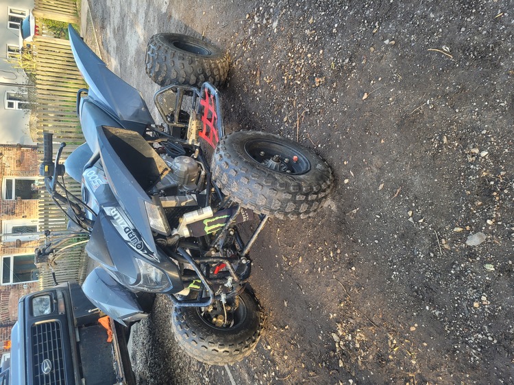 Quad up for swaps or sale it's not for the faint harted mot ain't that long but can mot for right deal it has full scorpion exhaust jetted to suit it done low miles clean quad for age front right tyer is low on tred got full logbook runs and rides as it should loads of power don't really know what to say about it needs to be seen to appreciate any questions just ask
