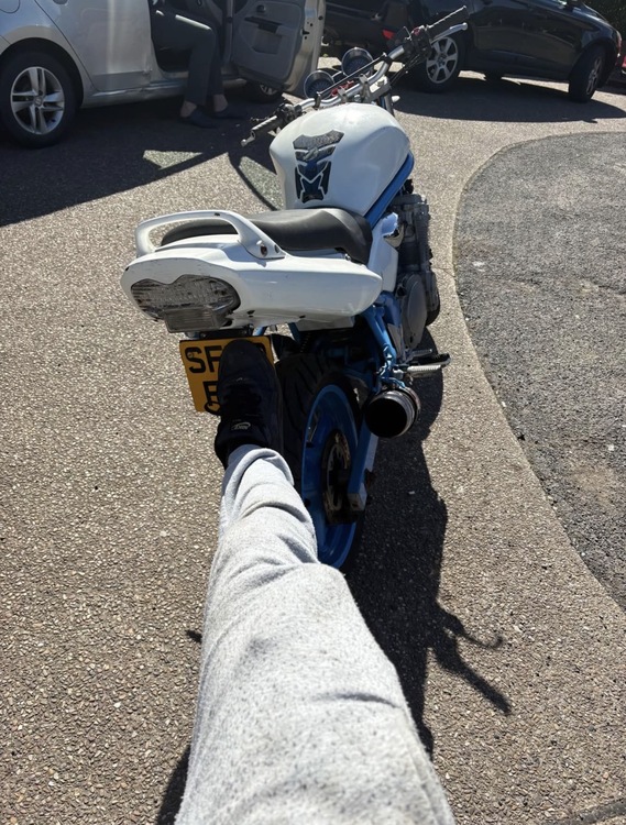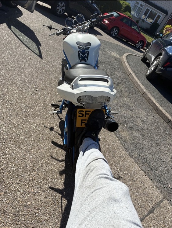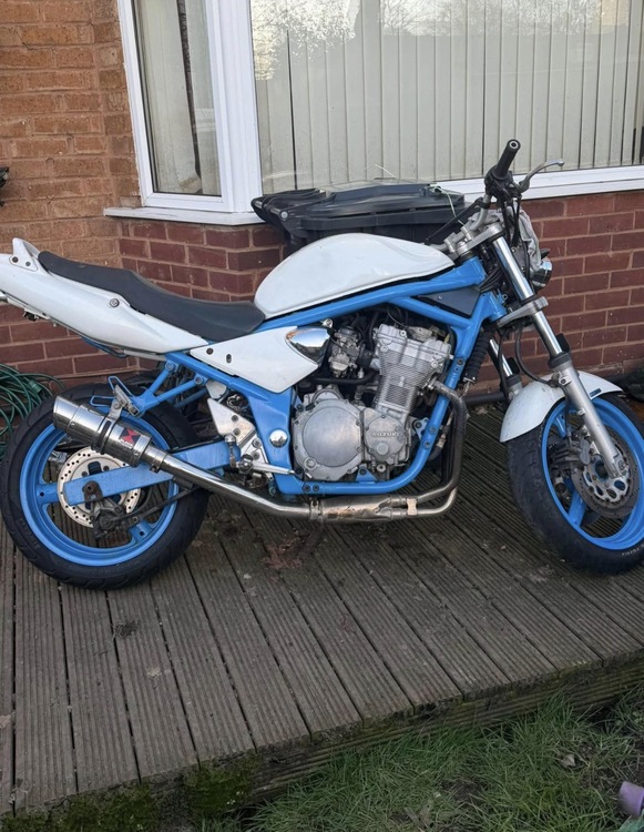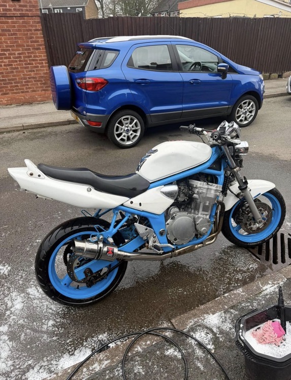 2003 Suzuki bandit 40k miles runs and rides mint the clutch cable snapped on me today on the way home from fork but I’ve ordered a new one that arrives on Wednesday the wheels and frame have been powder coated blue and the rest is white it is a really nice bike looks better in person full logbook 1 key