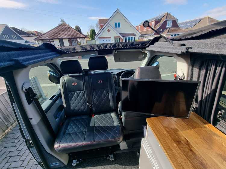 I had the furniture modified to accommodate one rear seat that lifts in and out when camping the rear seat has iso fix
