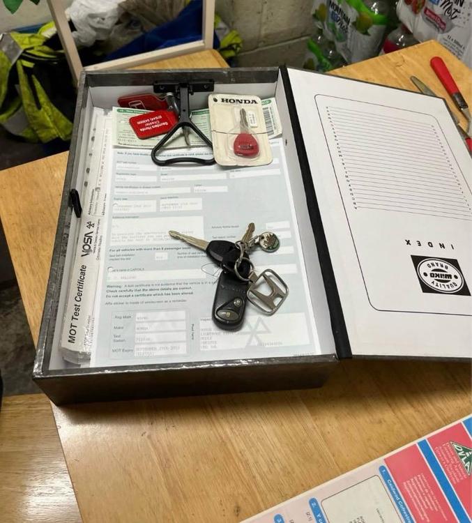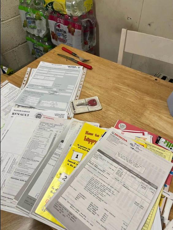 A folder full of paperwork comes with the car