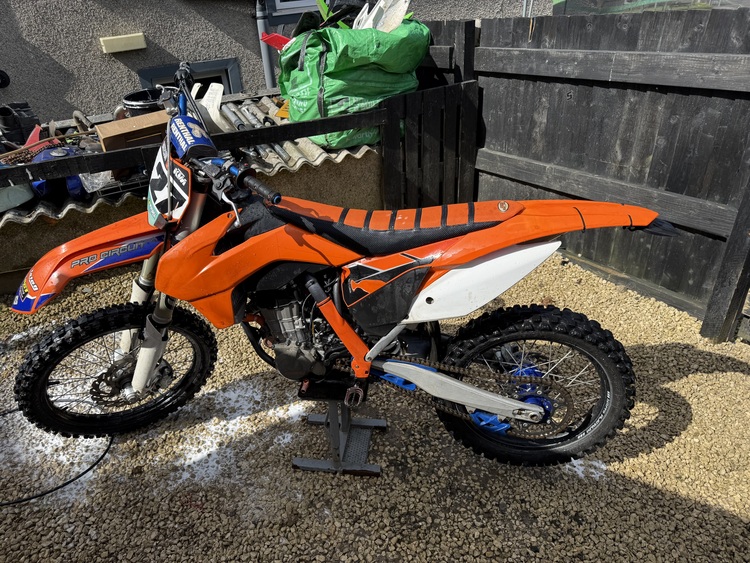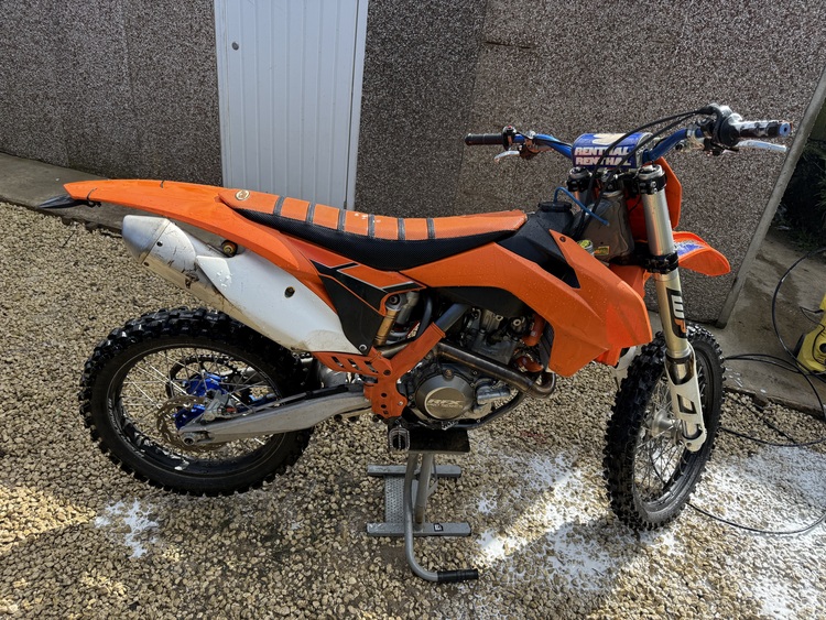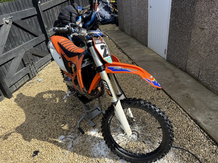 Ktm 450 sxf 2015 road legal runs and rides spot loads of after market parts bigger Crome rads sm pro wheels blue renthal bars after market foot pegs and rear brake pedal rfx clucth case cover got green slip paper from when it was make road legal and service book and the ktm books from new will take a px at trade price sold as seen at £2500