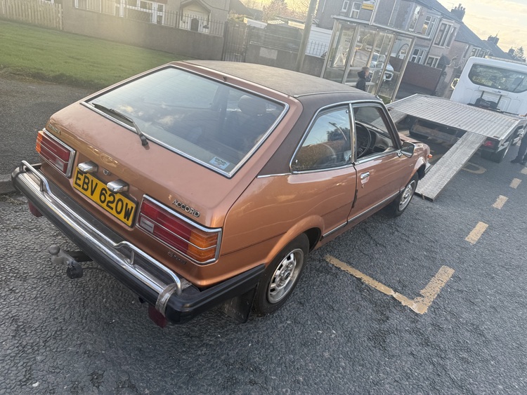 Honda accord 3 Gmp 1980 I have had it Runin got a video from the other day will need new fuel tho as been stood few years it’s mot and tax exempt got full logbook and all the other paper work two keys 1 owner car very clean for the age been dry stored after offers or will take deals on it not in no rush tho 31k on clock hpi clear I have not seen one like it in the uk so silly offers will be ignored