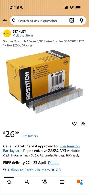 26 boxes of bostitich staples 2500 staples in each box 15mm so all in 65000 staples brand new in box