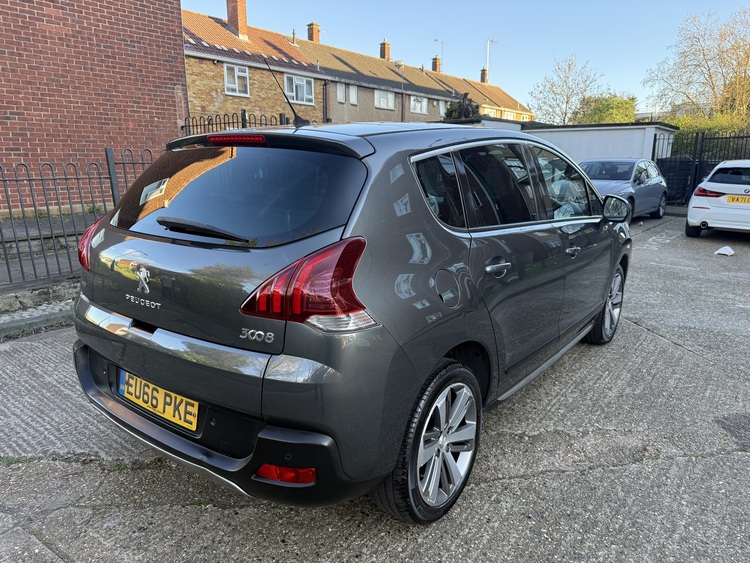 2016 Peugeot 3008 with a 1.2 Petrol Ulezz Free engine. It comes with two keys and is fully loaded: a panoramic roof, climate control, cruise control, lane assist, central locking, electric windows, electric mirrors with folding function, sat nav, front and rear cameras, front and rear parking sensors, and a head-up display showing your speed. HPI Clear . It has brand new tyres fitted. Road tax is only £35 a year. In immaculate condition, with verified mileage. Plus, it has V5 Full MOT 2 Key