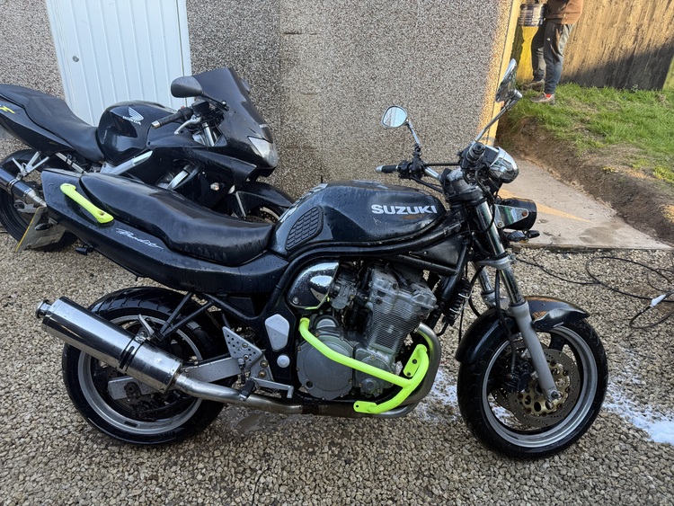 Suzuki bandit 600 1998 runs and rides as it should do after matket head lights renthal bars after market bars on side after market exhaust rear shocked lift kit does need a mot don’t see why won’t pass all works as it should do got full logbook and keys sold as seen at £850