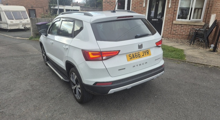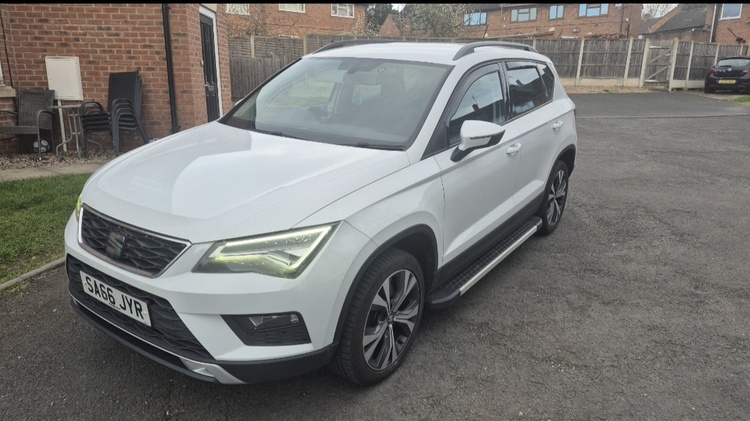 Here is my seat ateca first addition ecomotive 2wd Its 1.6 diesel only £35 year road tax with 102k will raise as in daily use it has large touch screen DAB radio with sat nav and reverse camera keyless start keyless entry led head lights electric windows all round and electric folding mirrows comes with 2 remote keys 17"alloys with good tyres full mot with no advisories full logbook absolutely brilliant on fuel sell for £6,500 ideally looking to swap for a 1.5 diesel ford kuga