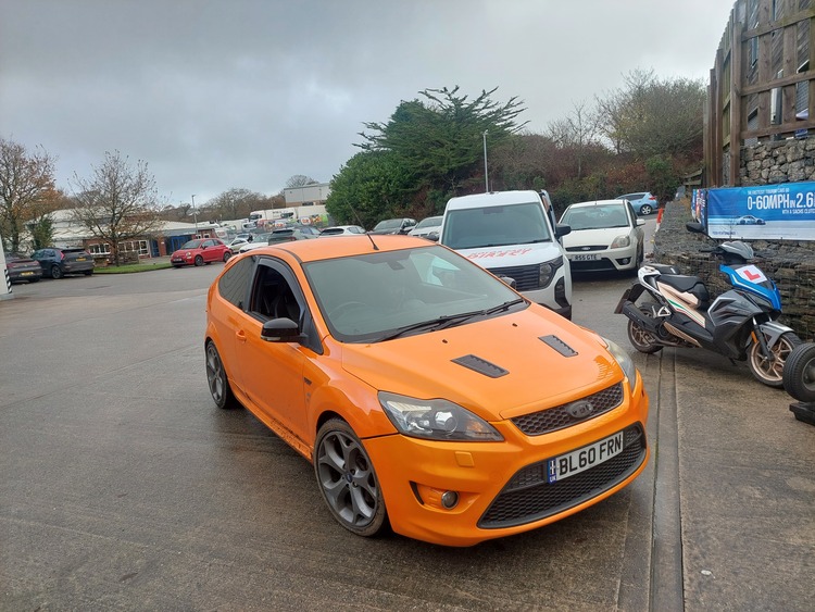 Focus mk2 st3 stage 2 hybrid turbo airtec fmi 550 injectors 3 inch full exhaust system ramair induction dream science remap long mot has the volvo engine which is honed different so doesn't need mod block underneath is mint no rust only one tiny spot on the bottom of driver wing new front wishbones droplinks and driveshafts drives a1 does have some lacquer peel quick car