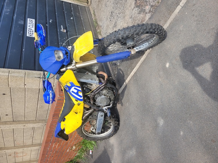 2003 Husqvarna te 450 4 stroke road legal starts of button hot or cold very powerful bike both brakes work as they should no mot will pass a day time mot with little work. No logbook or plate i know the reg tho. Has a few blue trick bits leavers foot pegs ect runs rides as it should very fast bike has been used a field bike for a few years so will need a once over for road use! based Wakefield west yorkshire