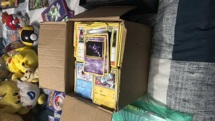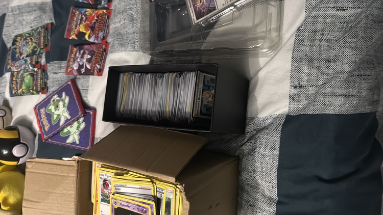 Box full of common cards from all different sets, holos and reverse holos from all different sets, unopened McDonald’s cards, box full of Japanese, Chinese and Korean cards, original comics 8 of them !!! 4 of them are definitely worth grading, other stuff there but please check photos, more photos available as it won’t let me upload my video just ask