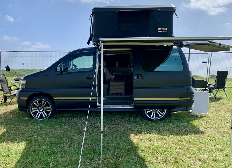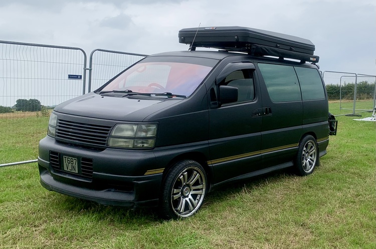 Classic mk1 1999 Nissan Elgrand E50 3.2 Turbo diesel, Automatic, only 68,000 miles,expensive satin black wrap, Privacy glass, led lights, 20” alloy wheels, Mpv, Looks and drives excellent comes with Adventure Setup, TentBox Classic 2 with XL Living Pod – ideal Festival & Camping Rig.